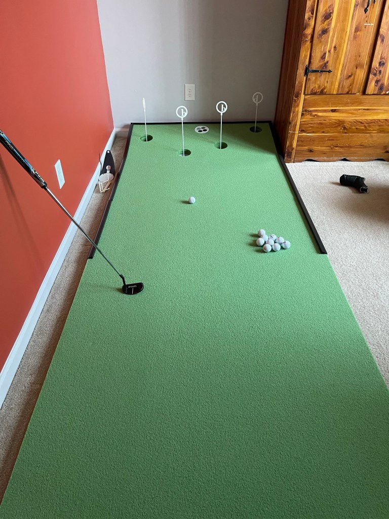 About the same time, I began working diligently on my long putts, I upgraded my indoor putting mat to a BirdieBall mat. It’s now conveniently in my home office. Each morning, after coffee and devotions, I have a little putting practice: 3 footers (about 20); 6 footers (about 20) and 12/14 footers (about 20). My goal from mid-season was to putt every. day.